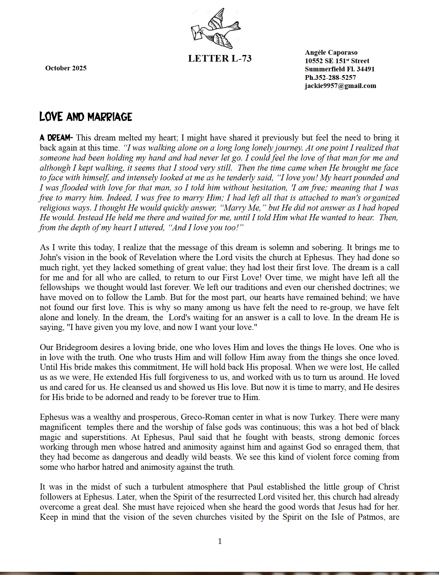 Jackie Caporaso is an inspiring friend who has been instrumental in the launching of Bible Concepts. Her writings are known as a current word that the Lord is speaking during this time of our transition from the old to the new creation in Christ. The Lord speaks frequently to her in dreams and has given her a keen sensitivity to understanding what the Spirit is speaking through them. The thread of her calling to this walk in Christ is found in the memoirs that are compiled in the book. Follow this thread and you’ll discover that the book is far more than the story of a young war bride that survived Nazi-occupied France.