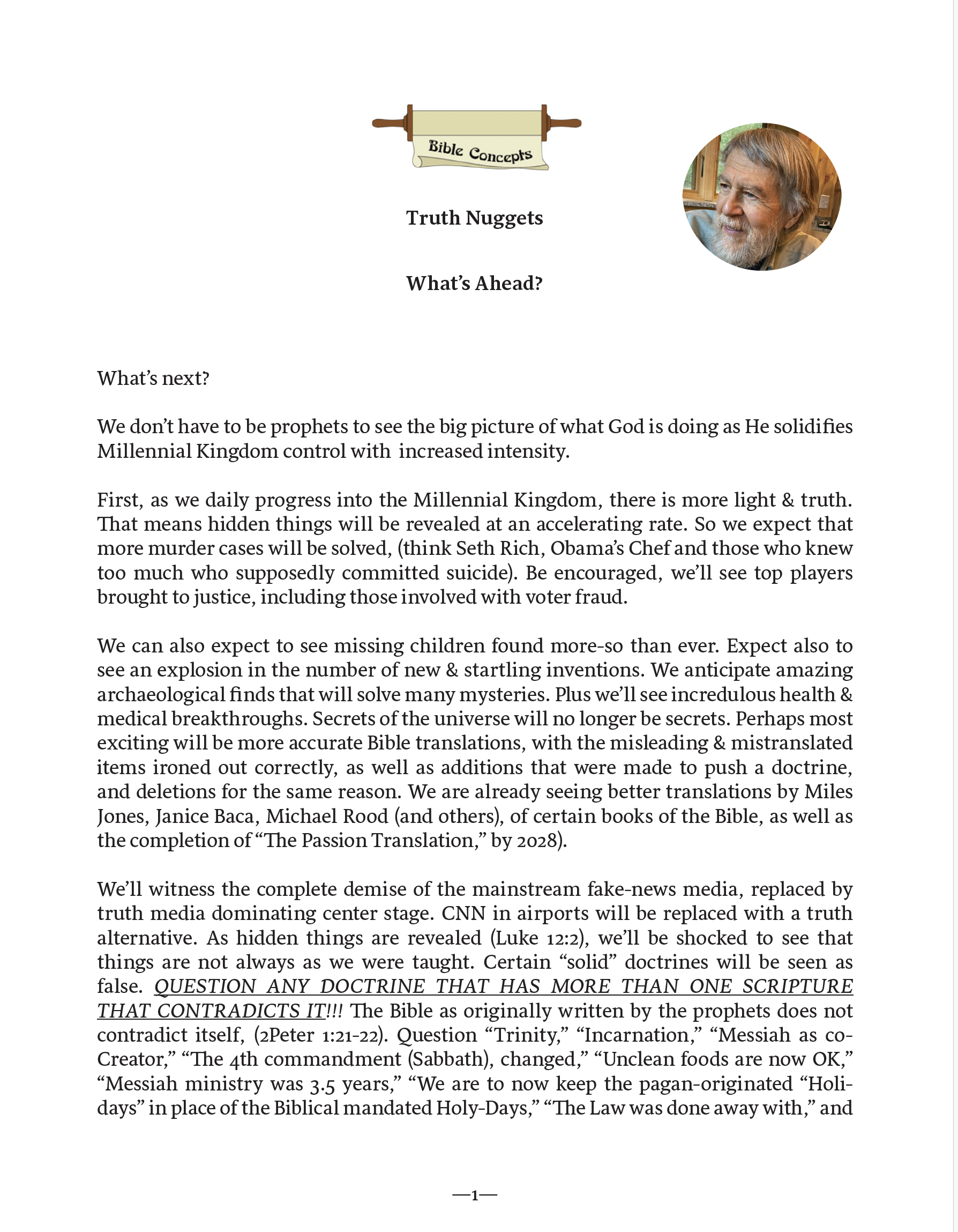 This is an 8-Page explanation of the timeline Chart of Study No. 10, and also shows the relevance of the Special Days for understanding what is going on today.